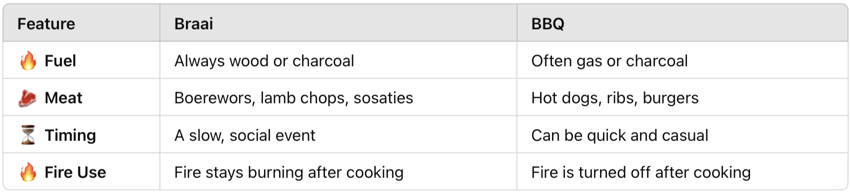 Bottom line? A braai isn’t just a way to cook—it’s a celebration of fire, food, and friendship.