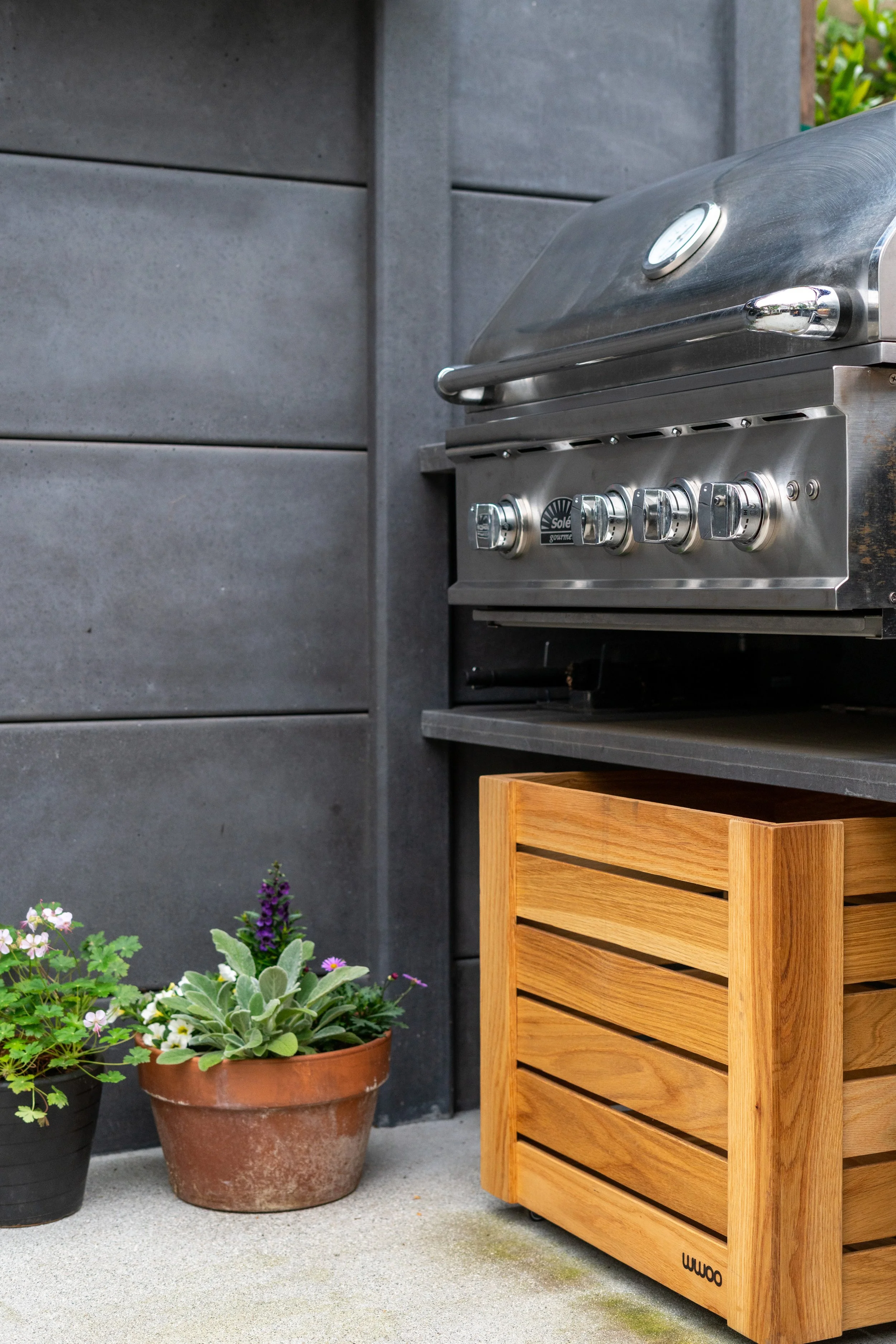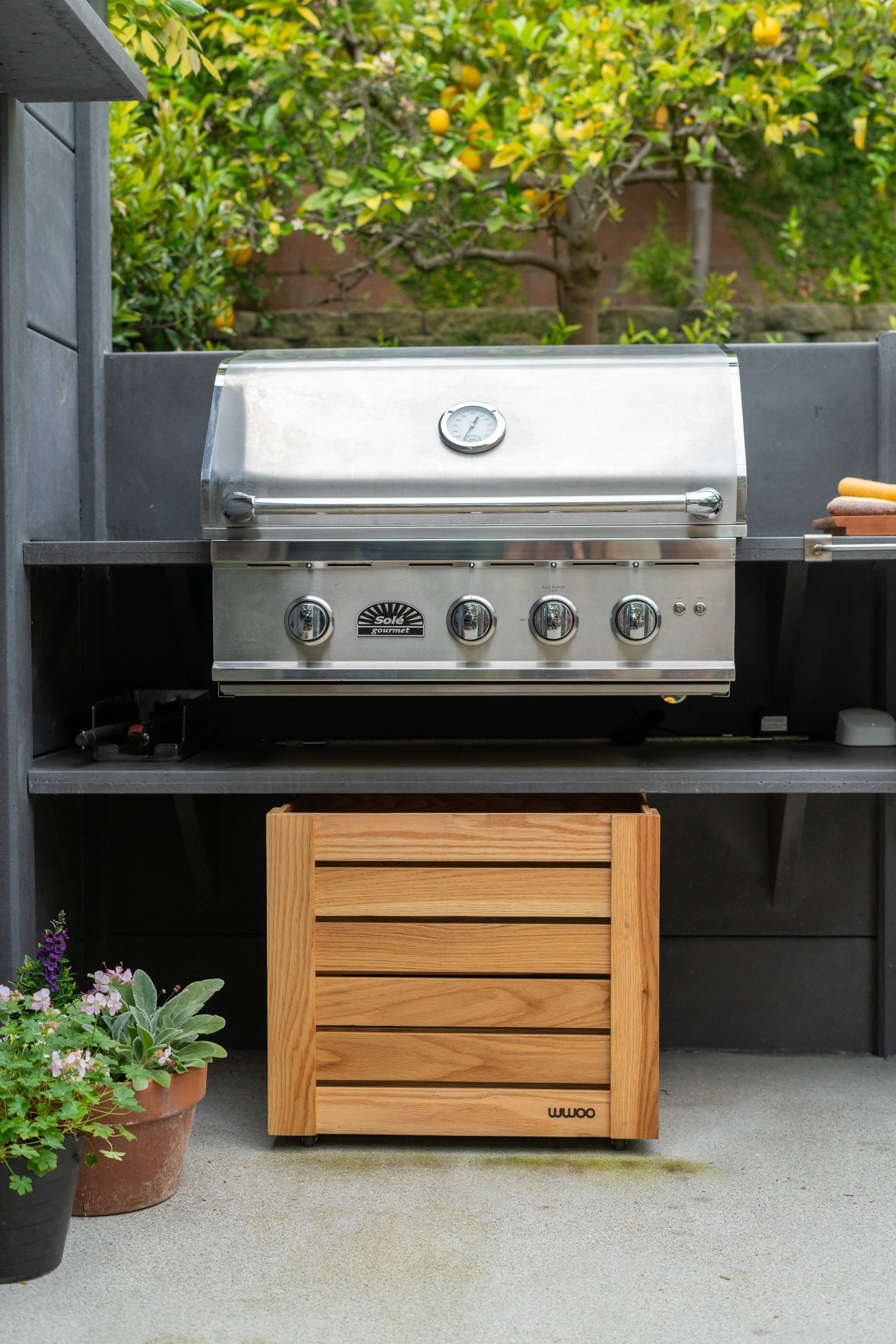 A custom trellis overhead, crafted by Outside Matters Landscaping, adds charm to the space and will gradually be adorned with lush wisteria, bringing a natural, shaded canopy. This setup combines functionality with elegance, making it an ideal outdoor gathering spot for family and friends. It’s a perfect example of how WWOO can transform backyards into year-round extensions of the home.